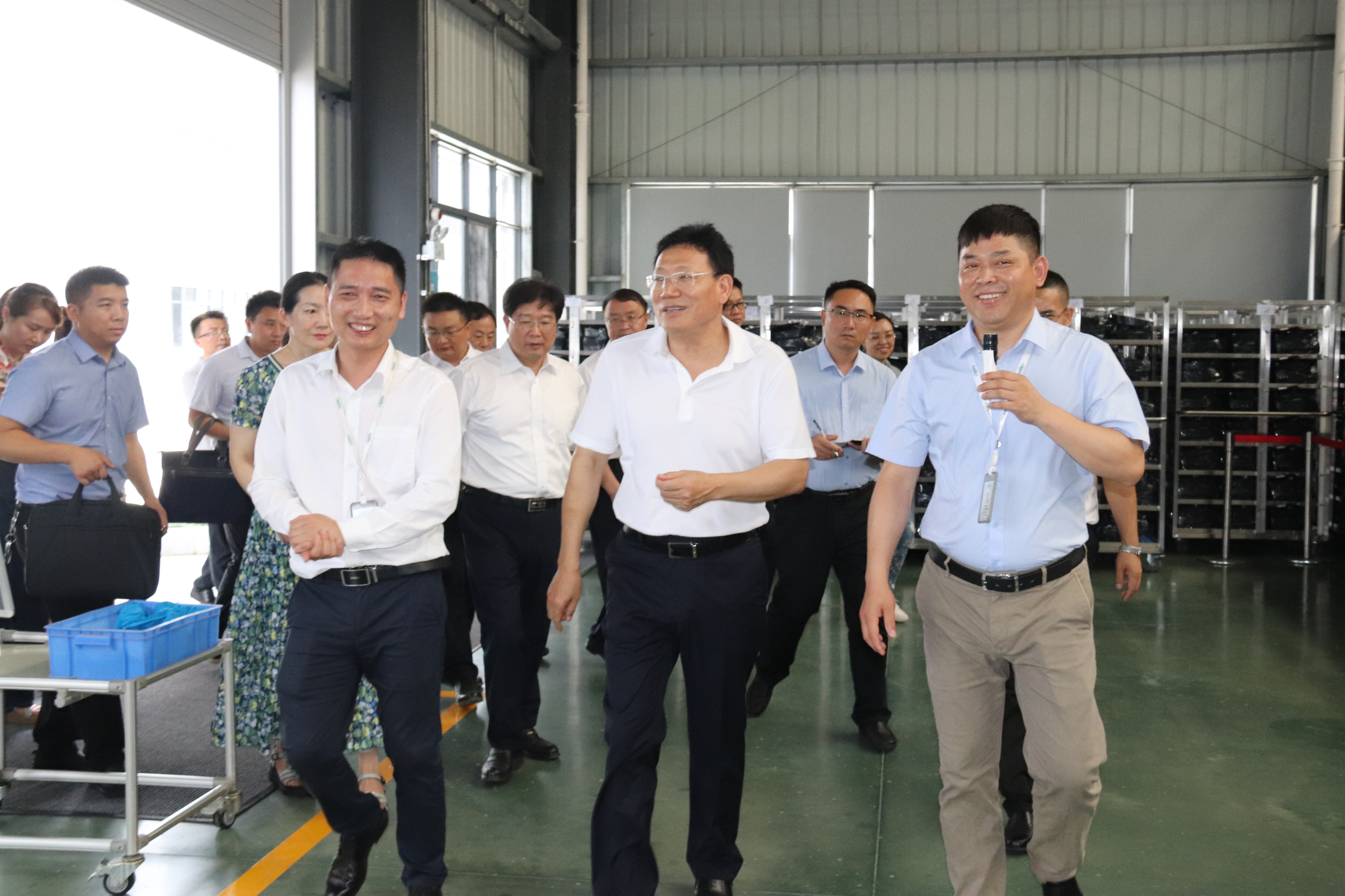 6月26日上午中共邵陽市委委員、常委、副書記華學健在邵陽經(jīng)開區(qū)黨工委副書記、管委會主任吳名蒙,黨工委副書記楊平的陪同下來我公司進行了參觀調(diào)研,公司副總經(jīng)理彭偉輝、智能制造中心副總監(jiān)章新接待了參觀團一行。